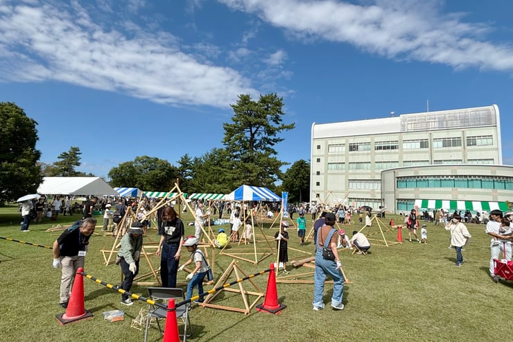 岐阜県の各務ヶ原市にある市民公園で開催された社会福祉フェスティバルにおいて「一寸格子」ワークショップをお手伝いさせていただきました。弊所は、JIA(日本建築家協会)の愛知地域会に所属していますが、同じ東海地区の岐阜地域会からお声掛けいただき、ワークショップを共同で開催いたしました。