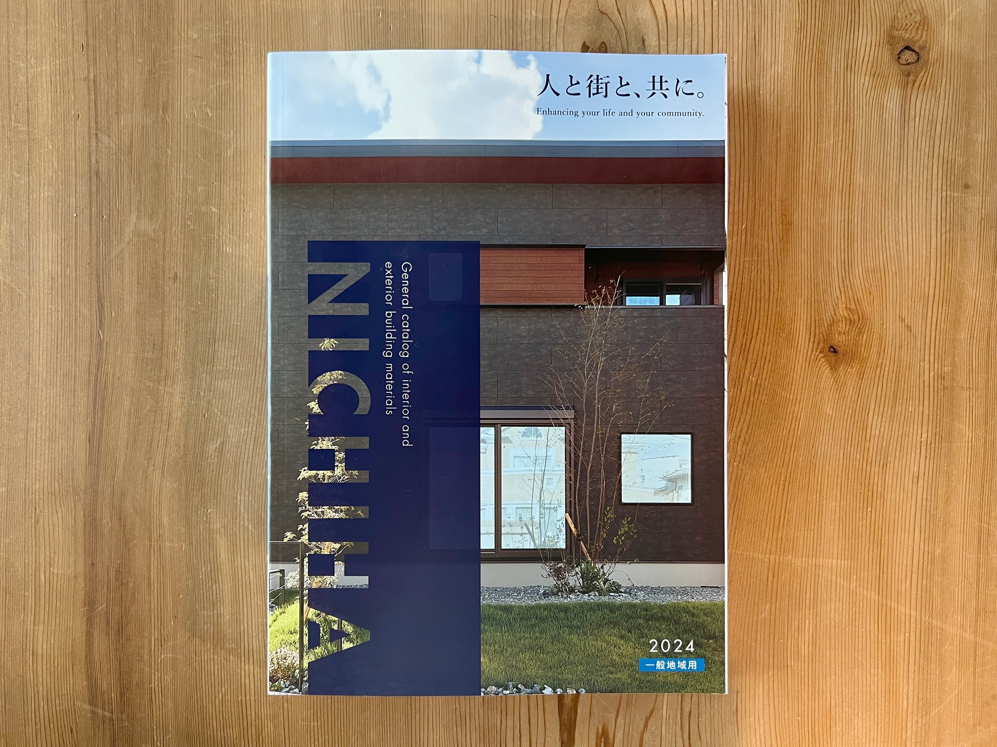 「第40回ニチハサイディングアワードの審査員特別賞」を2023年に受賞しましたHYGGEですが、2024年版の同社総合カタログの見開きに掲載されました。アワードの各受賞作品は、何らかの形で各種製品カタログに写真が使用されていますが、弊所が手がけました「HYGGE」は、巻頭の見開き2ページ分への掲載です。