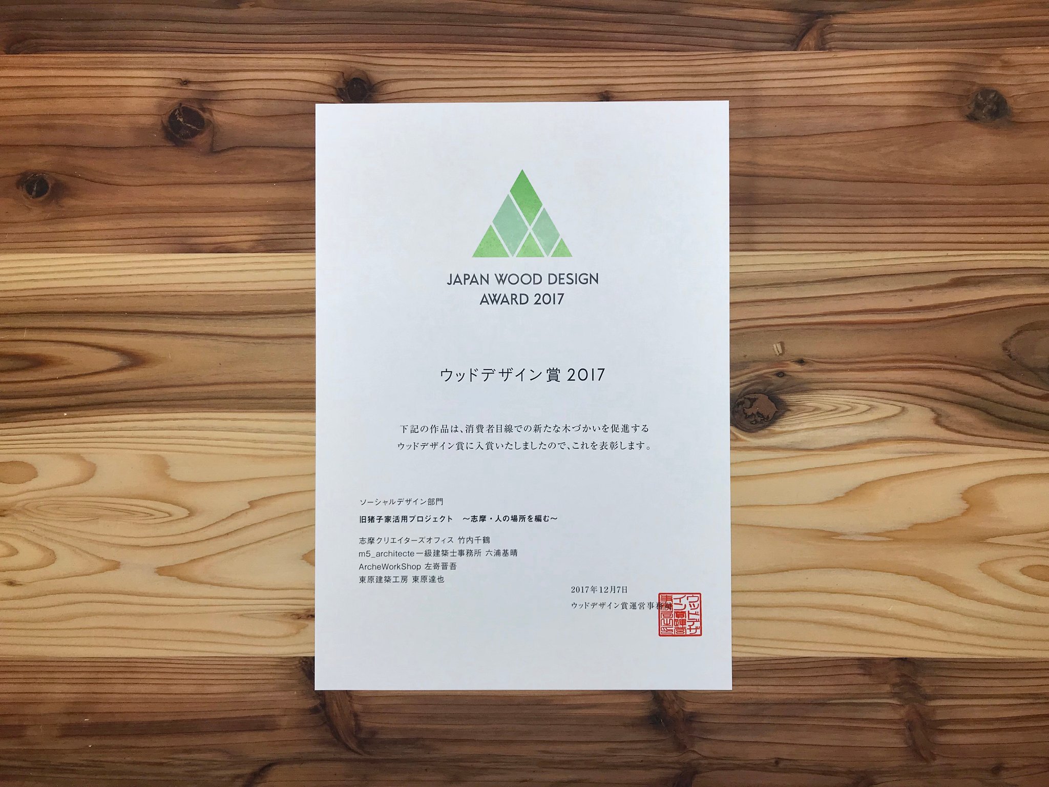 「旧猪子家活用プロジェクト~志摩・人の場所を編む」がウッドデザイン賞2017受賞
