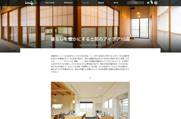 日本版「homify」に当設計事務所が携わりました “通り土間のある家” のアイディアが選ばれ、記事なっております。