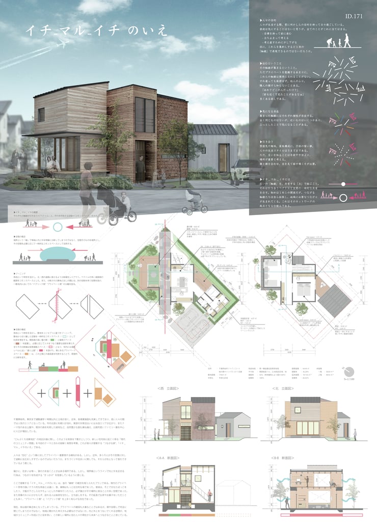 三井不動産レジデンシャル株式会社が、千葉県柏市の柏北部中央・こんぶくろ池東地区に計画予定の”ファインコート柏の葉キャンパス”におけますコンペ「三井の戸建 建築アイデアコンペ」に応募し、「イチ_マル_イチ のいえ」が入賞いたしました。