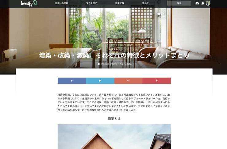 タイトルは「増築・改築・減築。それぞれの特徴とメリットまとめ」。