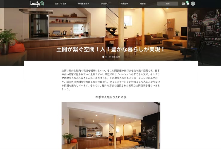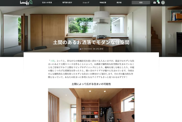 日本版「homify」に当設計事務所が携わりました “通り土間のある家” のダイニングが掲載されました。