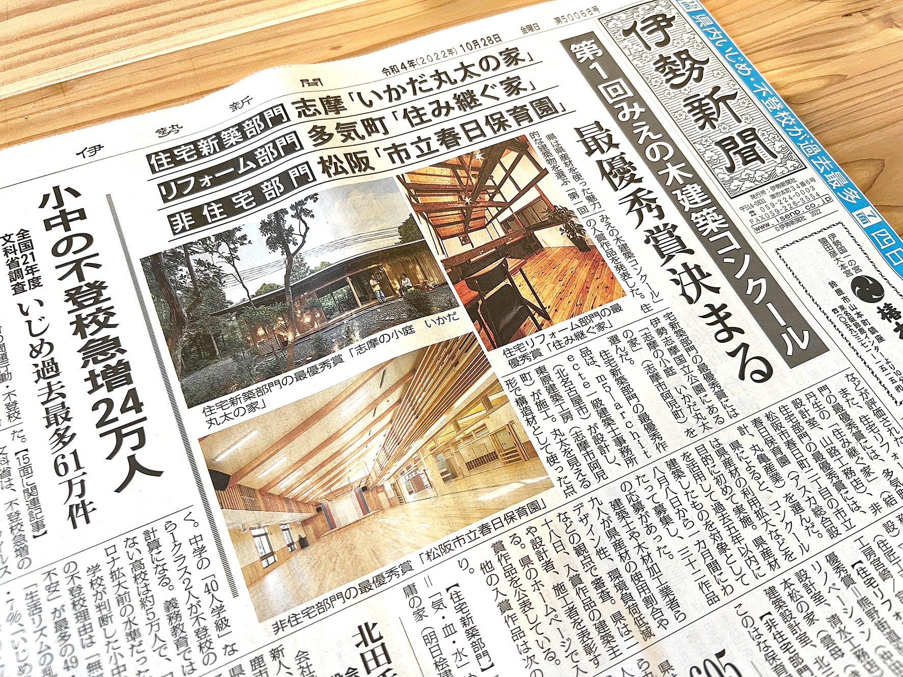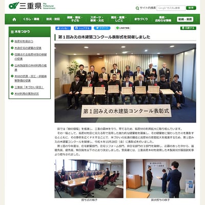第1回みえの木建築コンクールにつきまして、三重県庁で受賞式の様子が県のHPで公開されました。