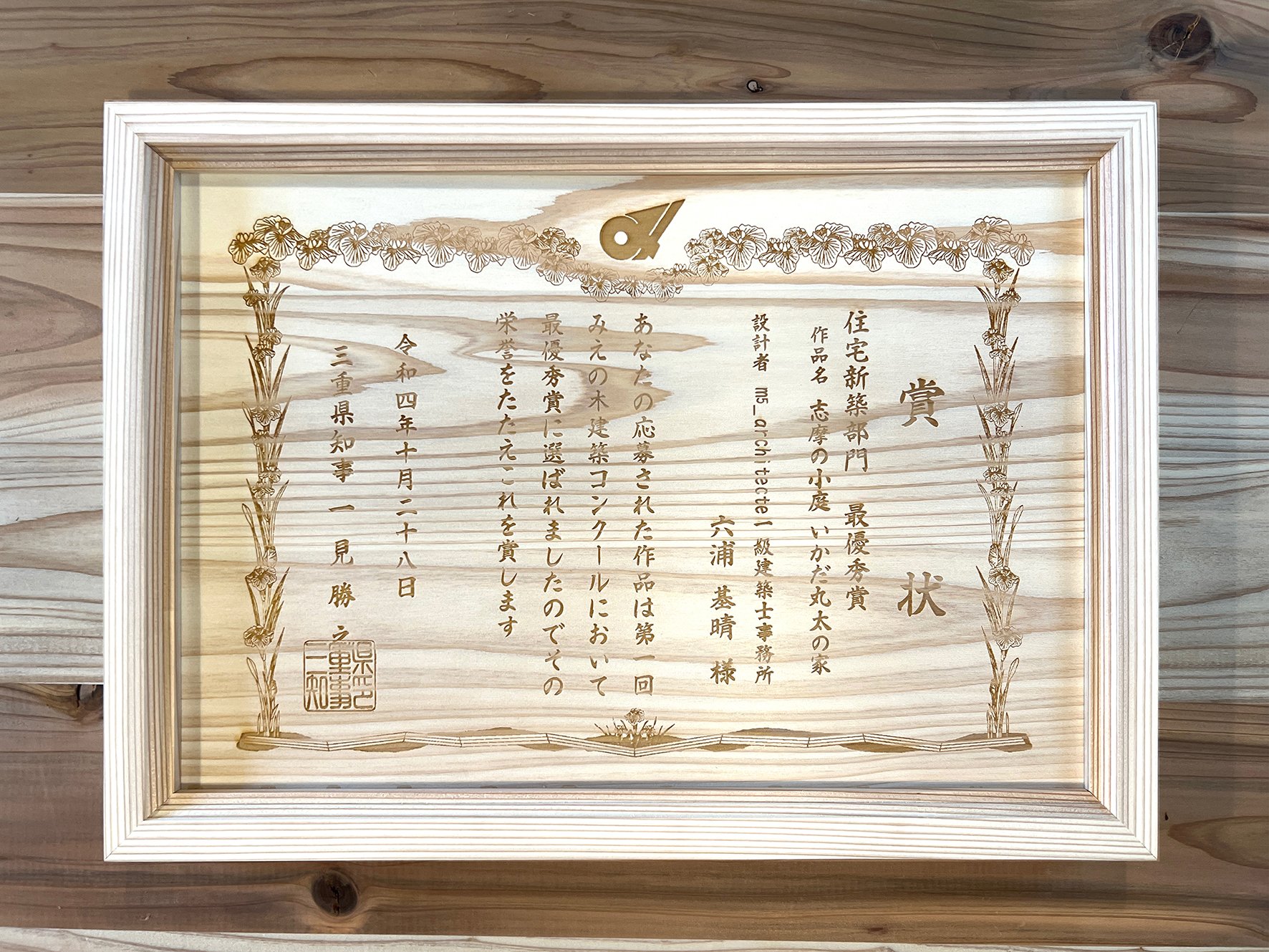 過日「志摩の小庭いかだ丸太の家」が三重県主催の第1回みえの木建築コンクール新築部門の最優秀賞をいただきましたことをご報告いたします。