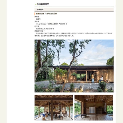 2020年、三重県志摩市において竣工しました「志摩の小庭いかだ丸太の家」が中部建築賞協議会主催の第53回中部建築賞に入賞いたしましたことをご報告いたします。